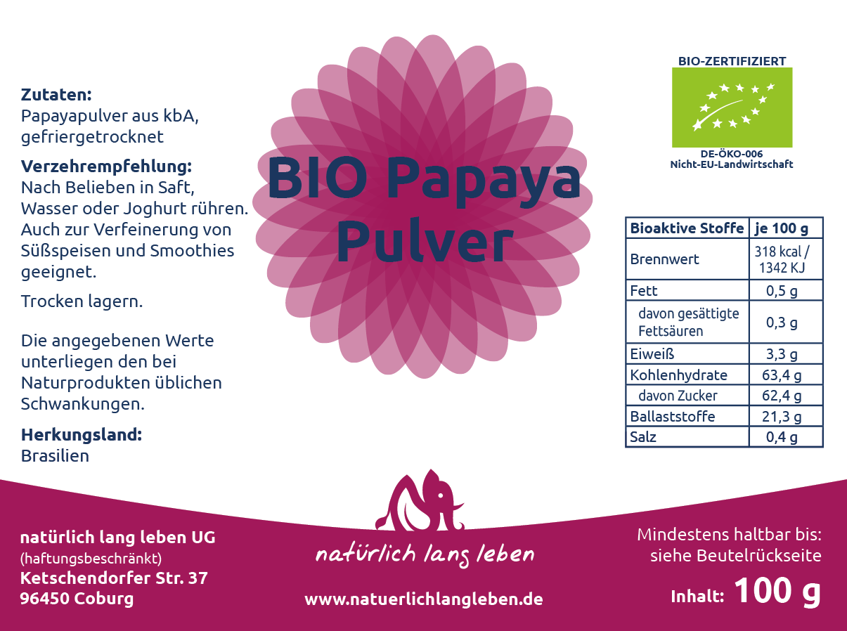 Papaya aus kbA pulverisiert, gefriergetrocknet