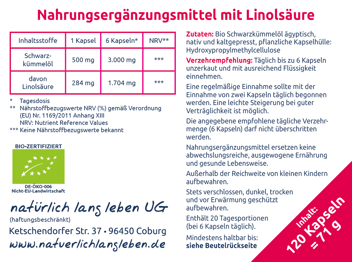 - enthält von Natur aus die Omega-6-Fettsäure Linolsäure