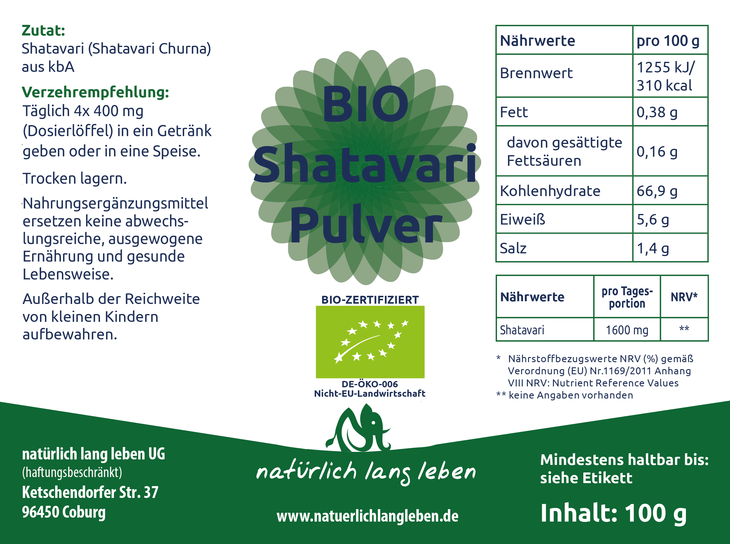 Produktdetails BIO Shatavari Pulver, 100 g