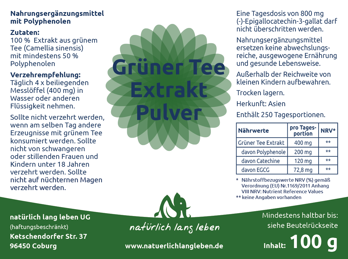 Grüner Tee Extrakt Pulver 100 g vegan (Epigallocatechingallat, Catechine, Epigallocatechin)