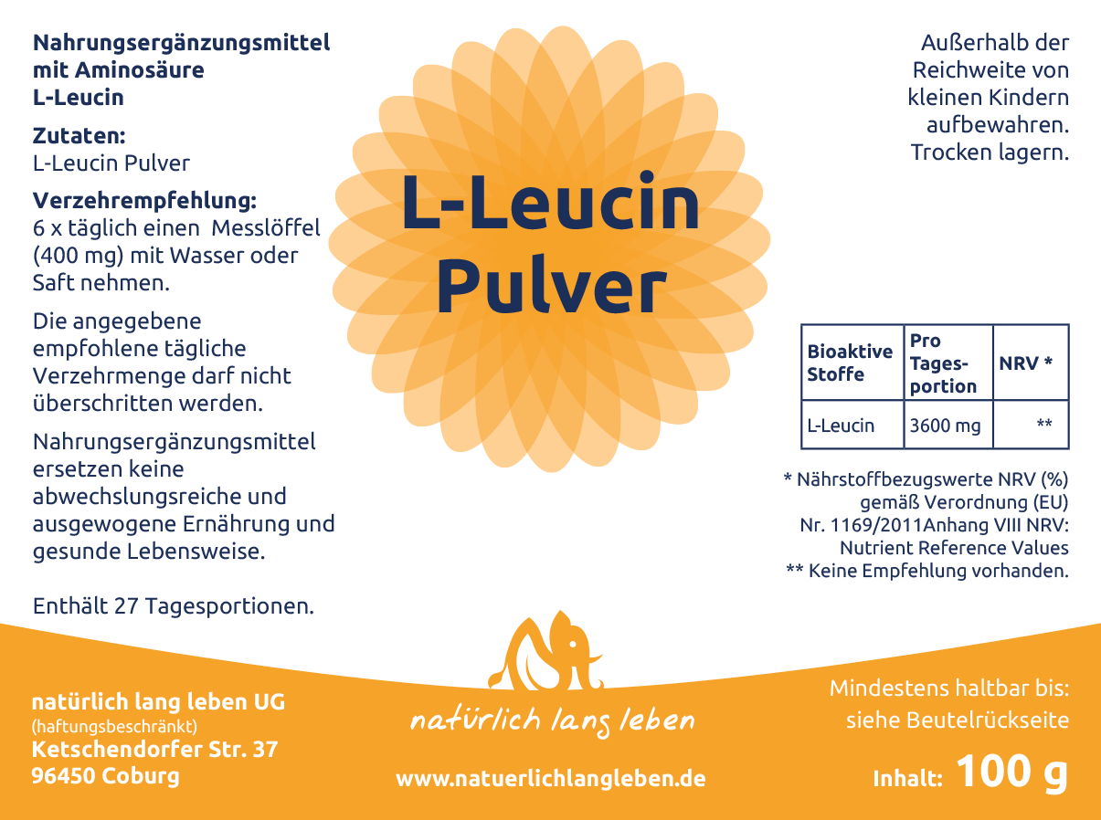 Produktdetails L-Leucin Pulver vegan, 100 g