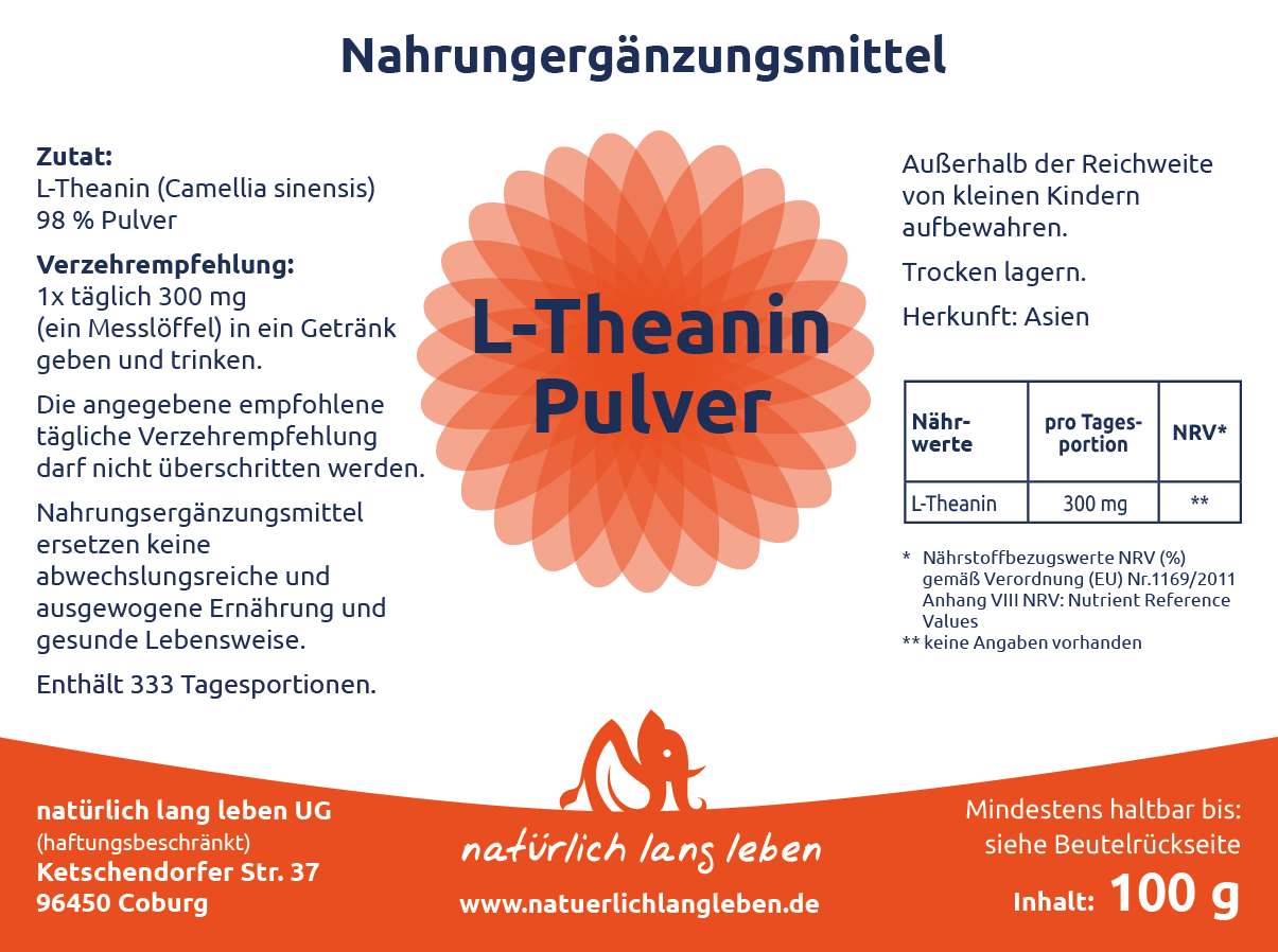 L-Theanin oder auch 5-N-Ethyl-L-Glutamin ist eine nichtproteinogene Aminosäure, die in den Blättern der Teepflanze (Camellia sinensis) zu finden ist. Unser Produkt stammt auch ausschließlich aus den Blättern dieser Teepflanze. Somit ist auch ein minimaler Gehalt an Coffein enthalten (0,05%). Der Preisunterschied bei unserem Produkt liegt an der reinen Herstellung. Es gibt auch Theanin aus Glutaminsäure und Ethylamin hergestellt, diese Variante ist wesentlich günstiger.