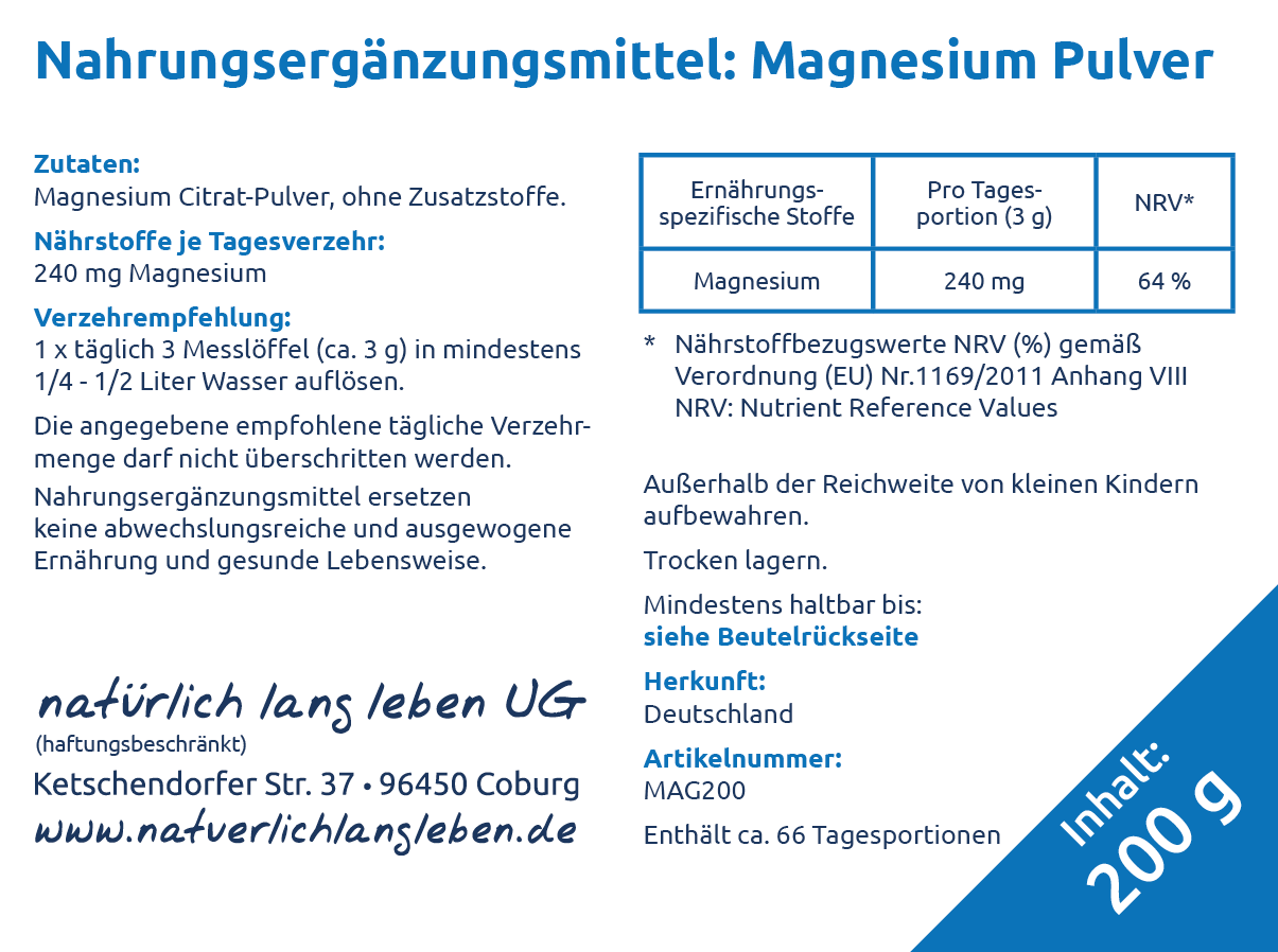 Hochwertiges Magnesiumcitrat, Herkunftsland: Deutschland