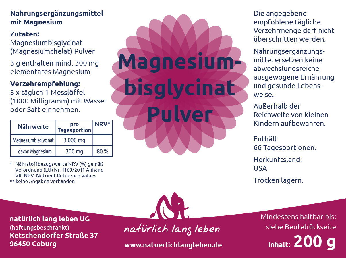 Magnesiumbisglycinat (Magnesium - Chelat) Pulver 200 g