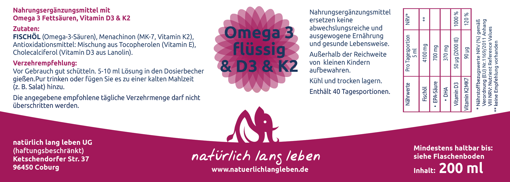 Produktbeschreibung Omega 3 flüssig & D3 & K2
