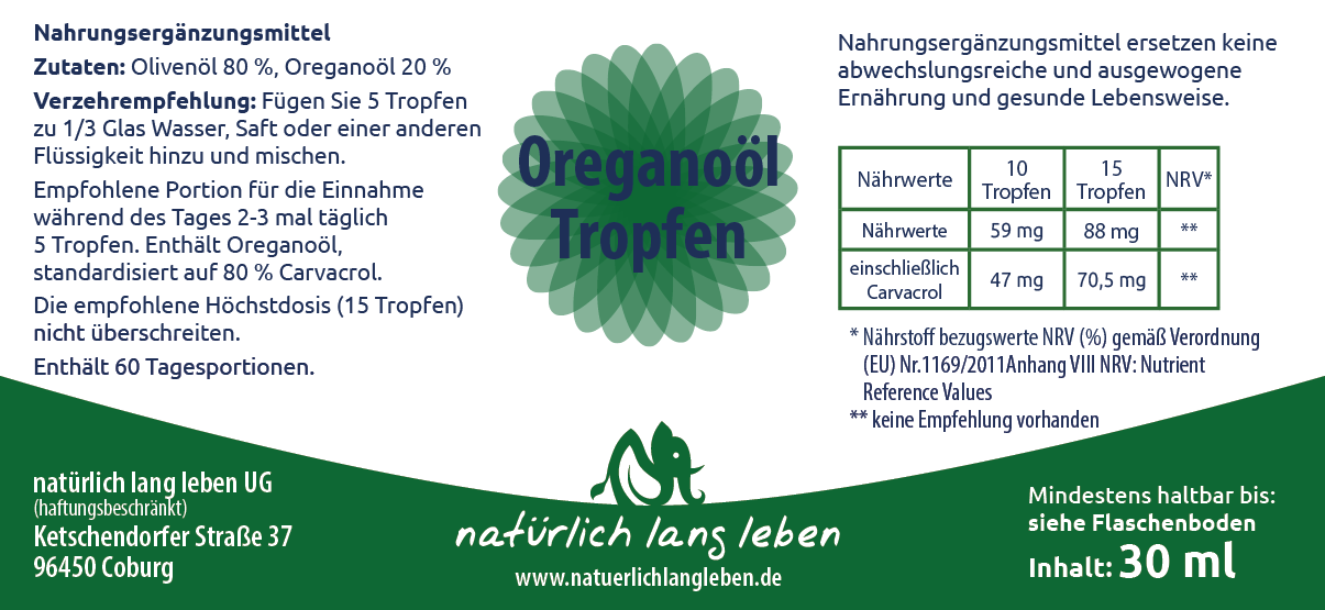 Die empfohlene Höchstdosis (15 Tropfen) enthält 60 mg Carvacrol. Überschreiten Sie nicht die empfohlene Portion für den Verzehr.