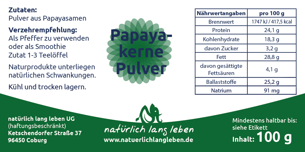 Papayakerne gemahlen 100 g Pulver