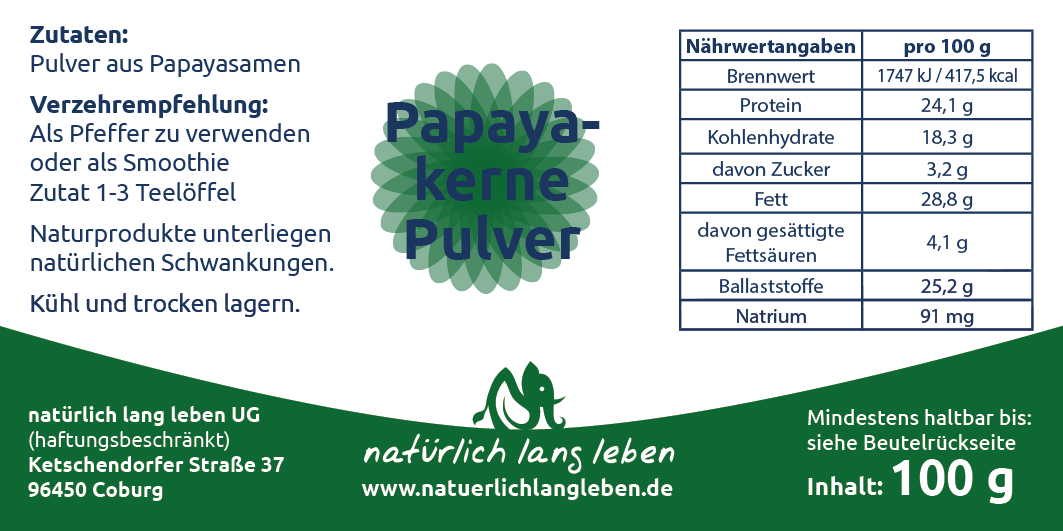 Produktbeschreibung Papayakern Pulver 100g